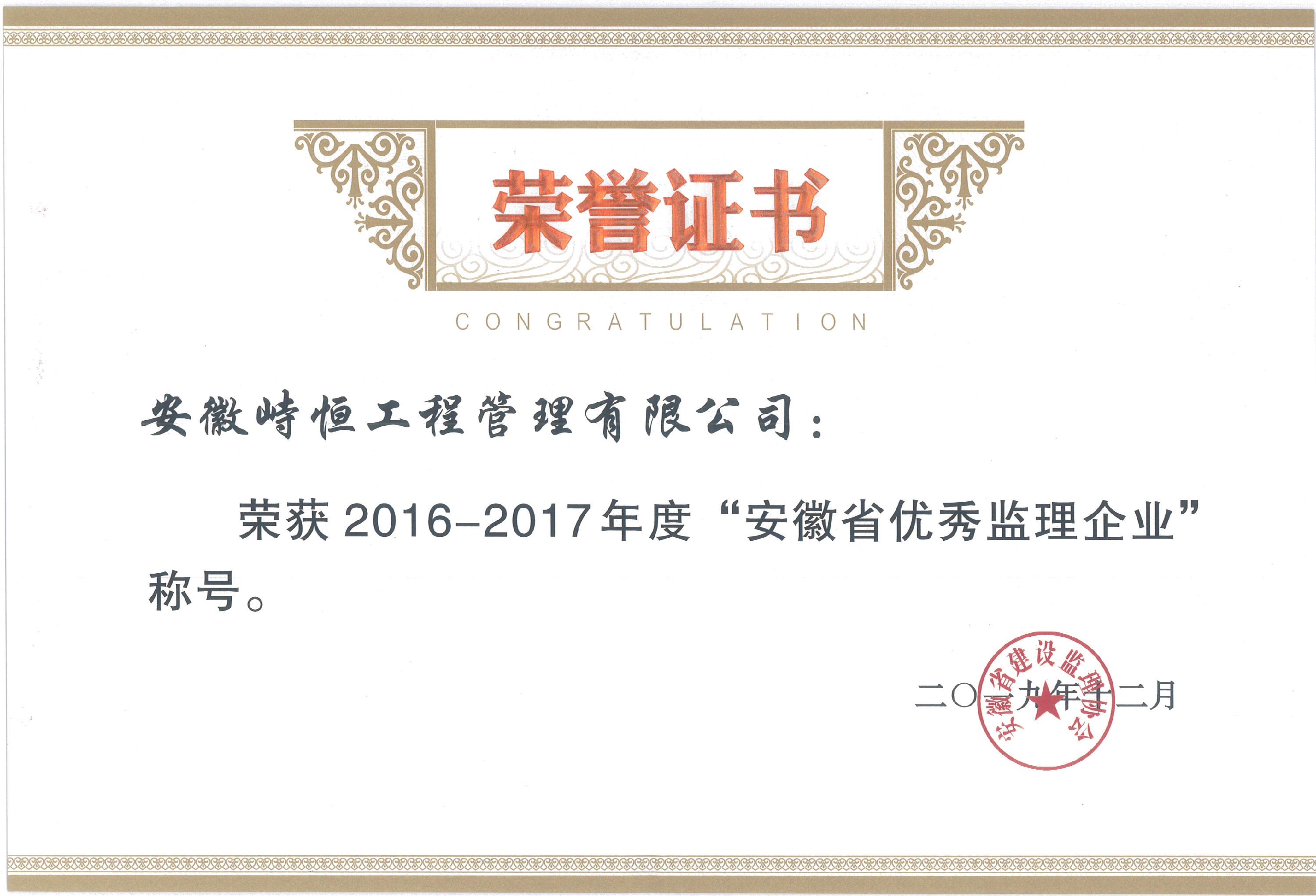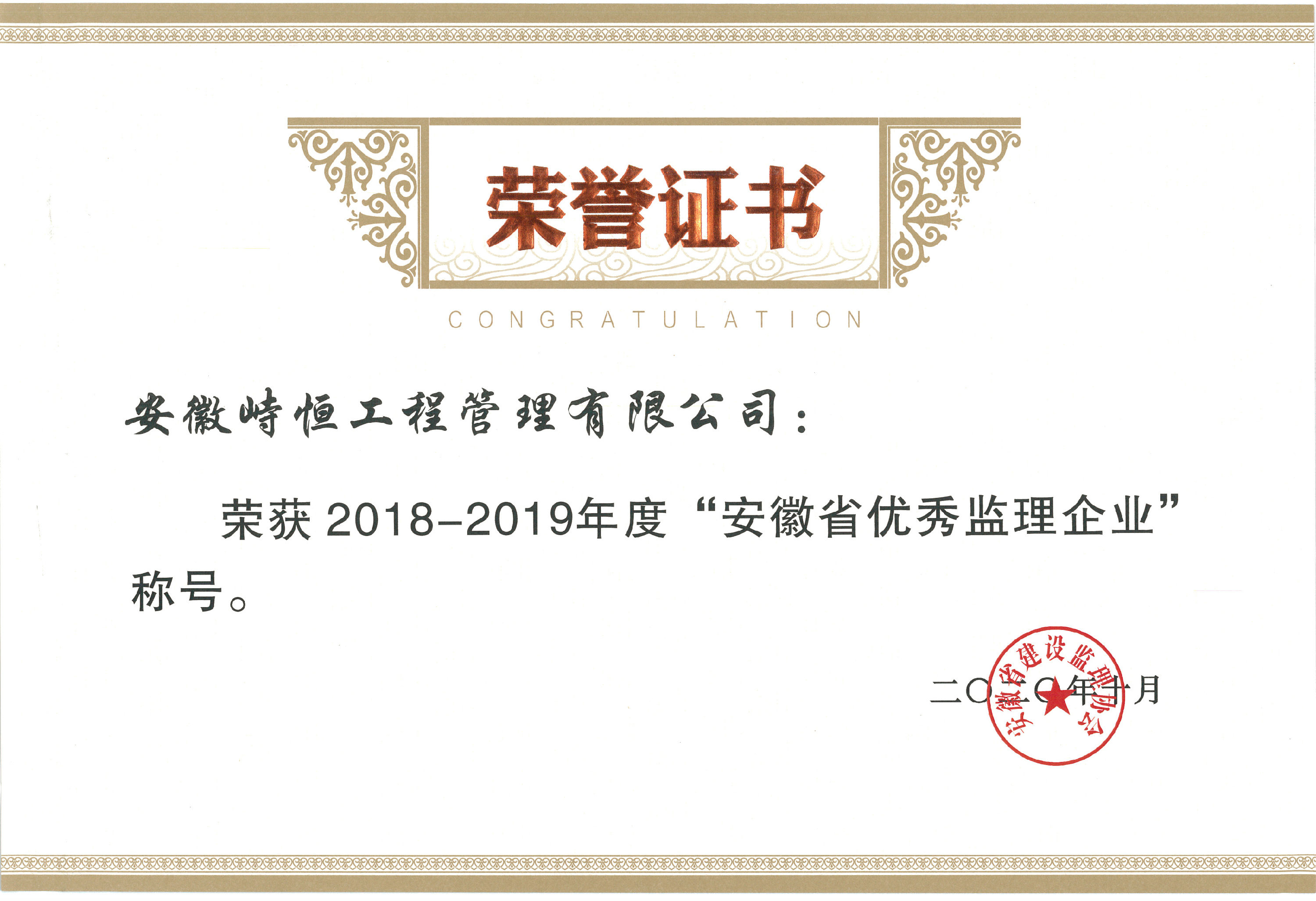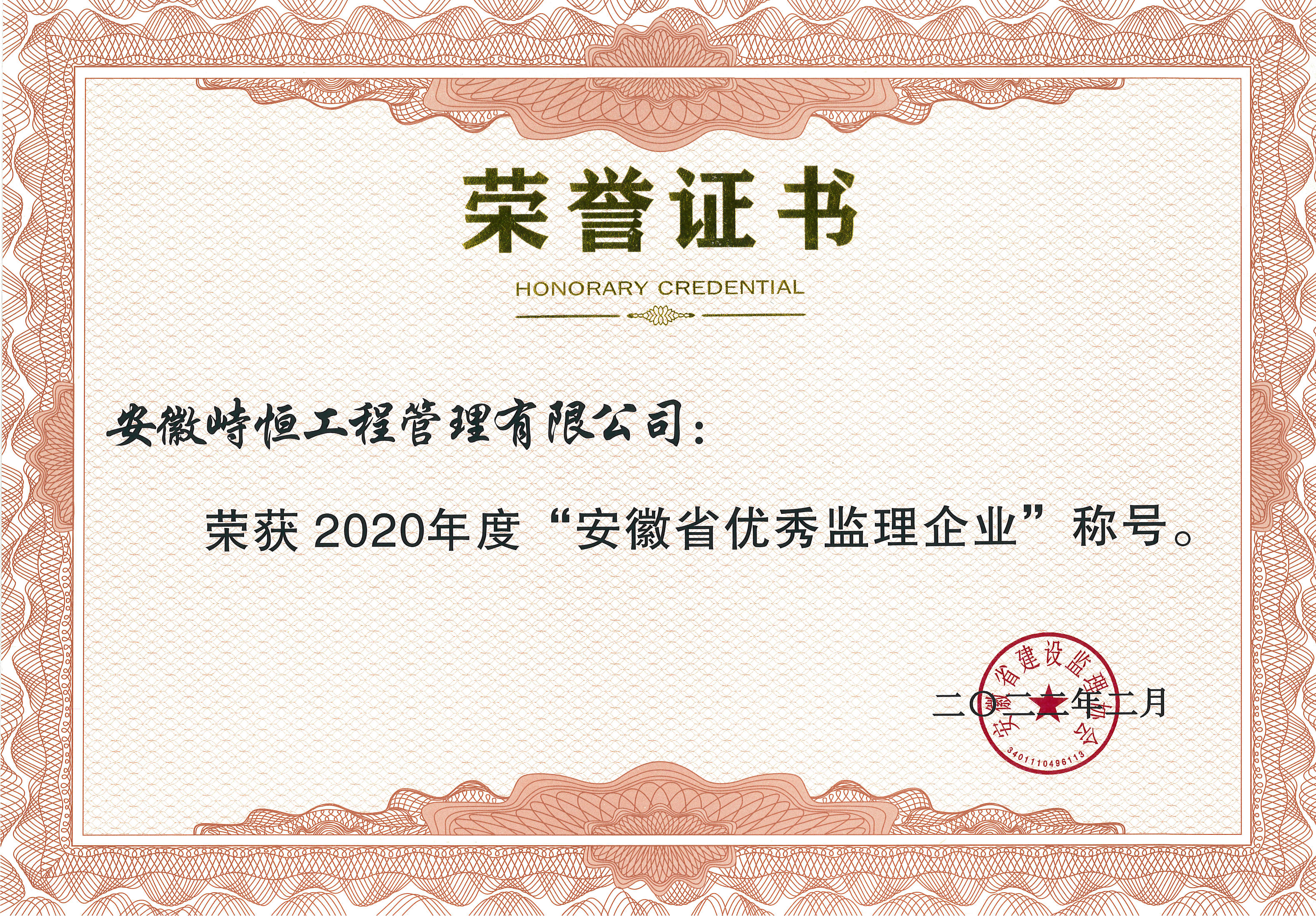 2020年度“安徽省优秀监理企业”