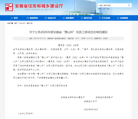近日,安徽省建设工程质量最高荣誉——“黄山杯”奖评选结果重磅出炉,公司监理的宿州市中医医院新院建设项目、宿州市第八中学项目、宿州雪枫中学项目凭借过硬的工程质量、创新的技术应用与精细的管理服务,成功斩获2025年度安徽省“黄山杯”奖项,成为行业内工程品质的典范代表,这既是对项目建设成果的高度认可,更是对安徽峙恒公司专业监理能力与责任担当的有力印证。