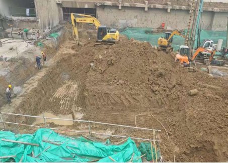负二层冠梁完成95%,CFG试桩完成、试桩检测完成、塔吊基础完成。